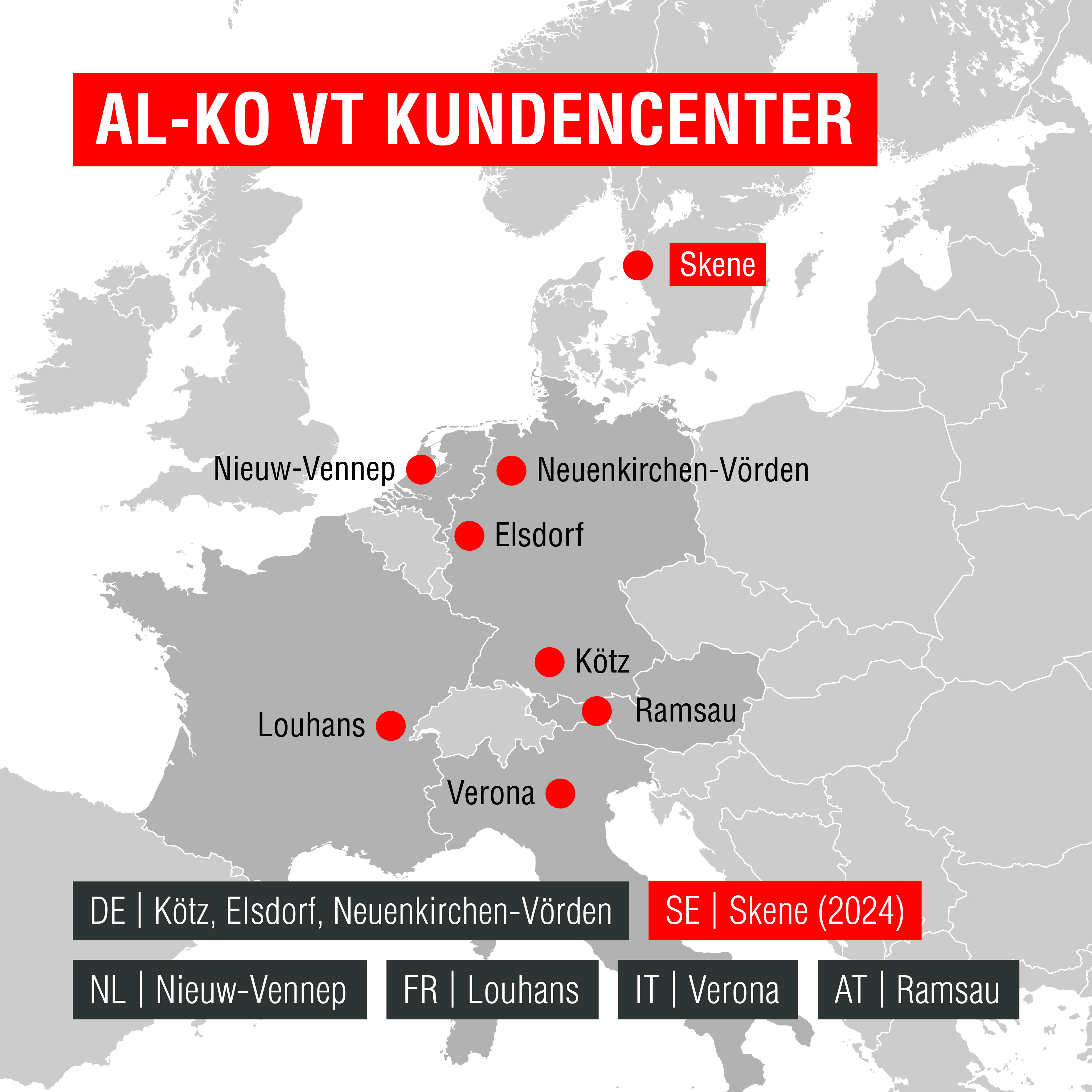„Die Übernahme des Unternehmens und das neue Kundencenter ermöglichen es uns, unser Serviceangebot für ganz Skandinavien zu erweitern“, sagt Fred Bentley, President und CEO von DexKo. Harald Hiller, President und CEO von AL-KO VT, erklärt: „Dies steht im Einklang mit unseren ehrgeizigen Plänen, unseren Zubehörmarkt europaweit auszubauen und so mehr Kundennähe zu gewinnen. AL-KO VT verfügt bereits über Kundencenter in Italien, Frankreich, Österreich und den Beneluxländern sowie an drei Standorten in Deutschland“.