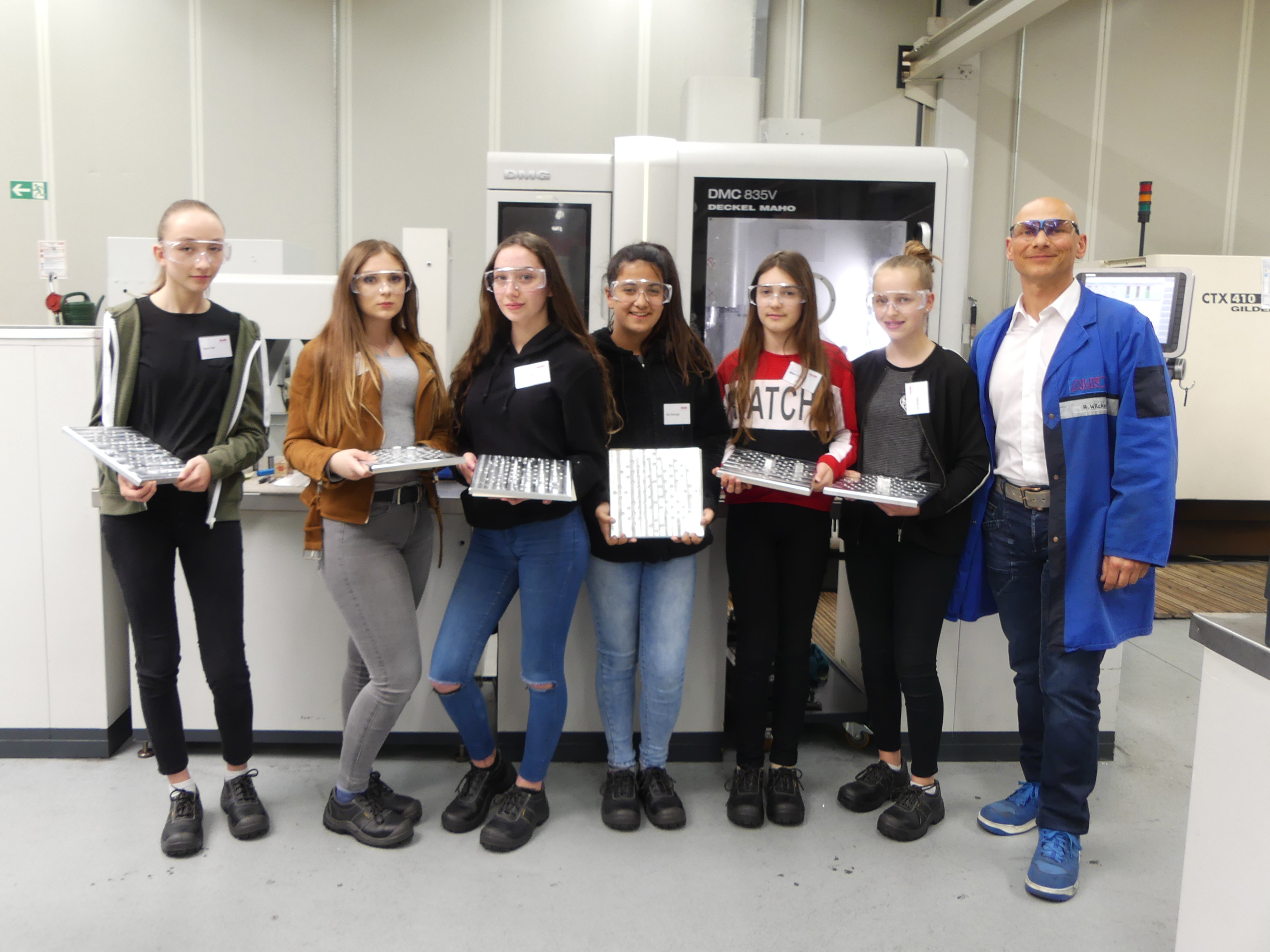 Viele neue Erfahrungen und Eindrücke haben die sechs Mädchen sammeln können, die am Girls‘ Day bei der Alois Kober GmbH (AL-KO Fahrzeugtechnik) teilgenommen haben. Nach einem Rundgang durch die Produktionsanlagen und das Kundencenter in Kleinkötz, verbrachten die Schülerinnen einen spannenden Tag in der Lehrwerkstatt des Unternehmens. Ziel ist es, junge Frauen für eigentlich „typische Männerberufe“ zu begeistern. AL-KO ist bereits seit Bestehen dieser Initiative Partner und so folgten auch in diesem Jahr wieder einige Schülerinnen dem Angebot, die gewerblich-technischen Ausbildungsberufe des Unternehmens kennen zu lernen. Der Teamleiter der Gewerblichen Ausbildung, Roland Wilcke, und seine Ausbilder Robert Paulheim und Harry Nather hatten eigens für diesen Tag ein interessantes Programm inklusive Betriebsführung für die Mädchen zusammengestellt. Zusätzlich unterstützen Auszubildende die Mädchen und standen ihnen mit Rat und Tat sowie technischem Know-how zur Seite.