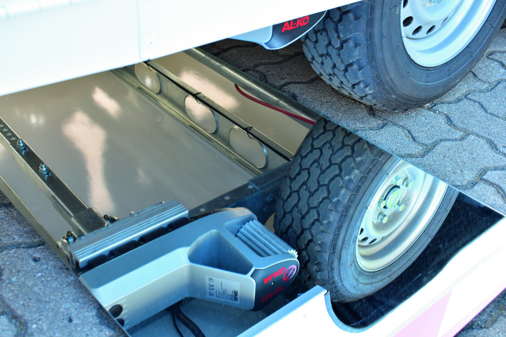 AL-KO MAMMUT_Antrieb 1: With the AL-KO Mammut manoeuvring drive, trailers can be moved easily and precisely using a joystick. The system for single-axle vehicles has 2 drives, the system for tandem vehicles has 4 drives.