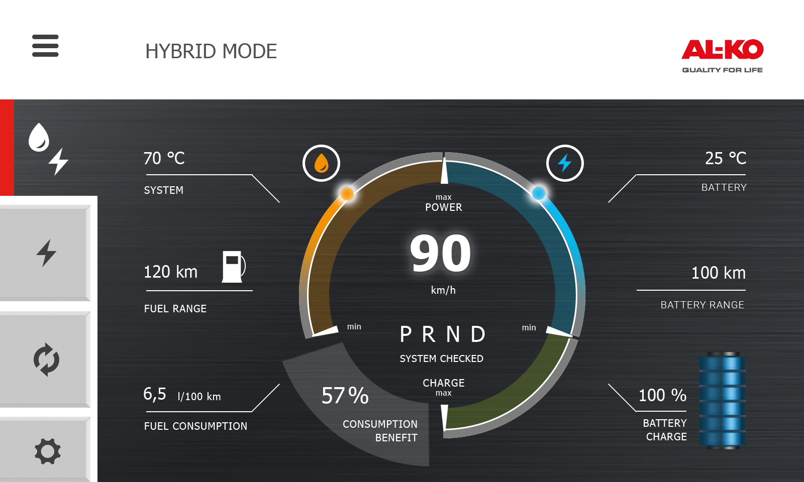AL-KO Hybrid Power Chassis_Hybrid Mode: The "Hybrid Mode" combines the E-Drive with the internal combustion engine of the vehicle, ensuring greater efficiency. This way, vehicle bodywork can also be supplied with energy.