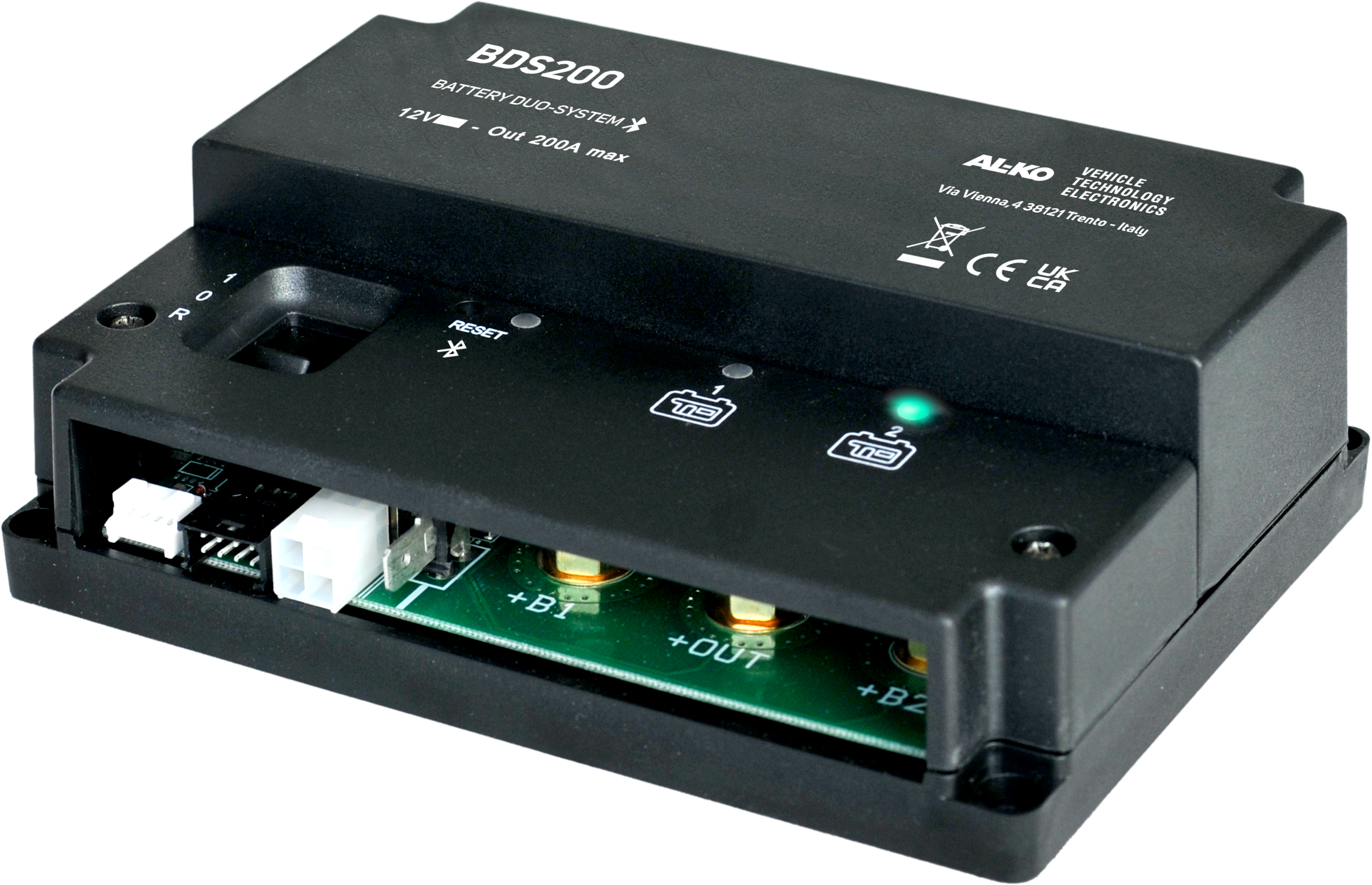 Il Battery Duo System-200 è un dispositivo in grado di gestire in modo intelligente due batterie di servizio a 12 volt, sia in fase di carica che in fase di scarica. Grazie al BDS200 è possibile collegare due batterie di capacità ed età diverse. Controllando continuamente la funzionalità di ogni singola batteria, in caso di problema a uno degli accumulatori questo viene automaticamente isolato. Il sistema è compatibile con lo standard di comunicazione CL-BUS per una perfetta integrazione con gli altri sistemi di bordo. Utilizzabile con batterie al litio e al piombo (ad acido libero, gel o AGM), gestisce una corrente massima di 200 ampere (100A per canale) e calcola automaticamente l’autonomia residua e il livello di carica, verificando lo stato di salute dell’accumulatore. Il tutto è visualizzabile, grazie al collegamento Bluetooth, sull’app Onda Smart System.