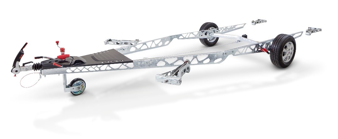 “Using the holistic green caravanning approach — consisting of lightweight construction, electrification, aerodynamics and sustainable materials — we are optimizing trailer trips’ CO2 emissions and reducing primary energy and raw materials consumption,” says Dr. Frank Sager. For example, further developing the VARIO X lightweight chassis ensures that trailers are up to 30 kg lighter and additional CO2 emissions can be saved. “AL-KO manufactures around 60,000 caravan chassis annually, more and more using the bionic VARIO X design,” comments Harald Hiller.