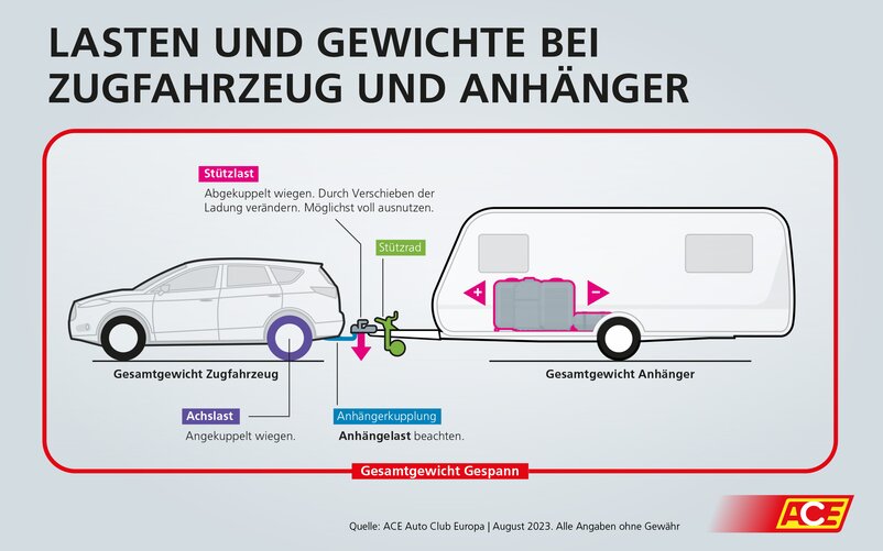 - Gewicht und Gewichtsverteilung sind die wesentlichen Faktoren für eine sichere Fahrt