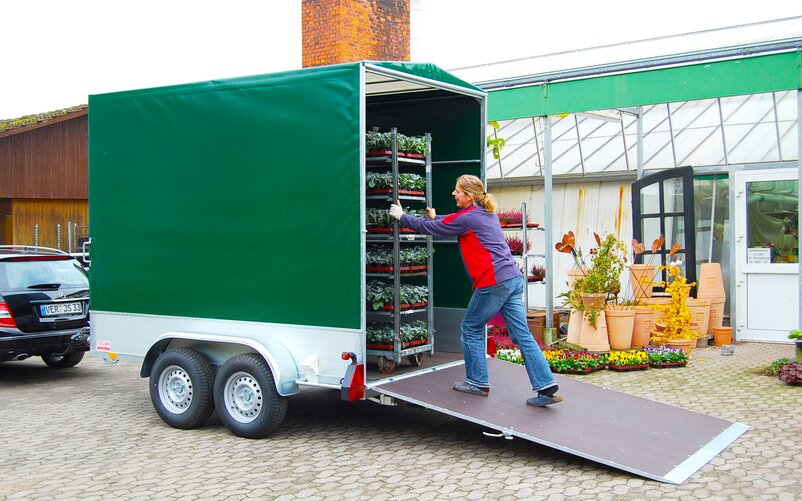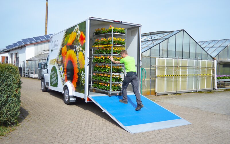 As early as the end of the 1960s, the company developed its first body solution for transporting plants, as the neighbouring nurseries were looking for equipment to transport their products. It was not long before this initial support was followed by a full range of products for the gardening industry. Today, the portfolio includes box and iso box bodies as well as tarpaulin bodies. These body solutions are specially made for CC containers designed for transporting potted plants and flowers by trailer, van or truck. CC containers serve as a recognised standard within the gardening industry for plant transport and can also be dismantled to reduce storage and transport costs for empties.