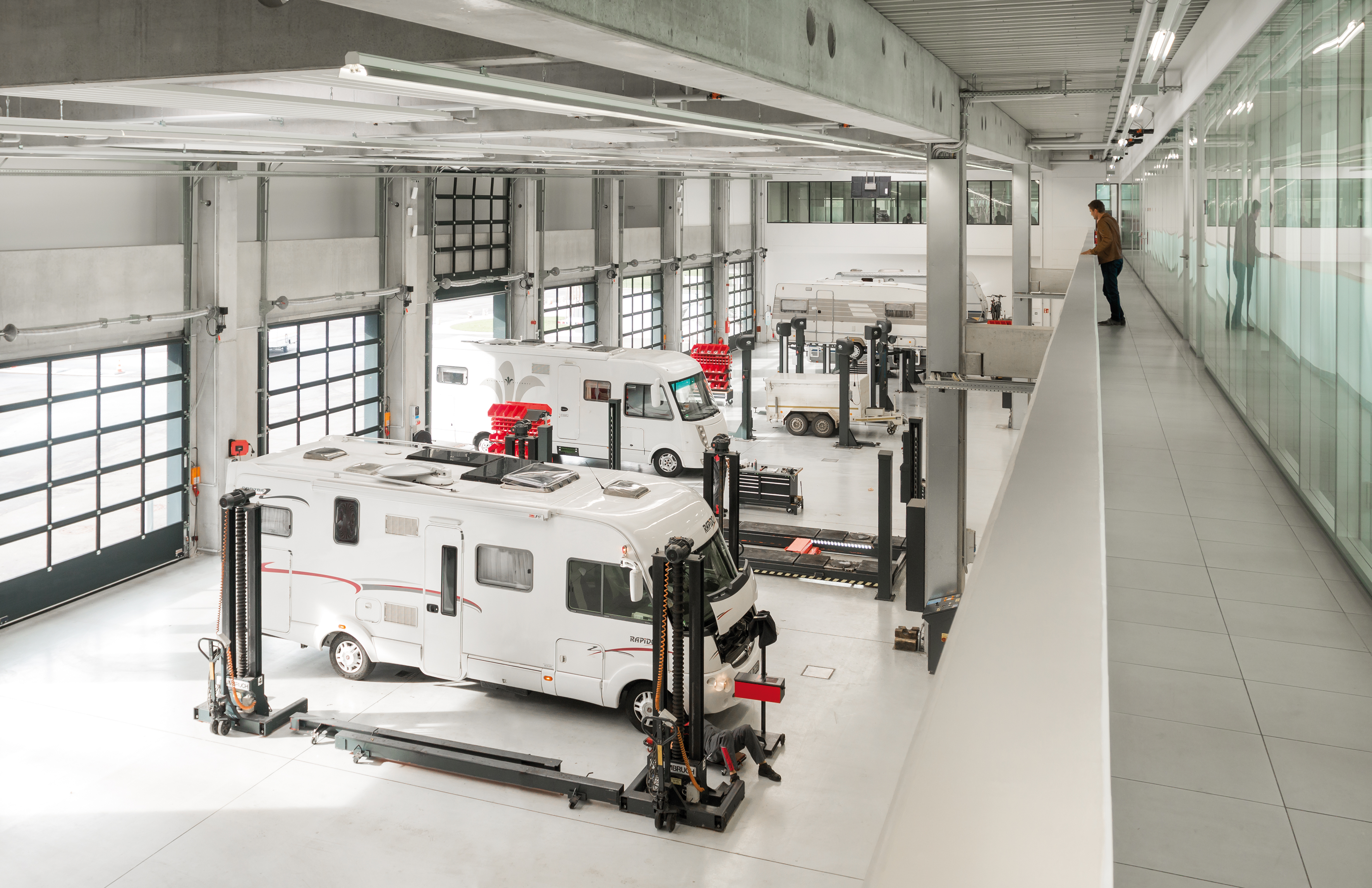 Zum Leistungsportfolio gehört der Einbau von Federungs- und Hubstützensystemen bei Wohnmobilen. Weiterhin werden Fahrradträger, Anhängerkupplungen oder Motorradverladehilfen für Wohnmobile installiert. Neben den klassischen Wartungs- und Reparaturarbeiten am Fahrwerk sowie den Auflastungsangeboten für Caravans erledigen die Kundencenter auch die Montage von Elektronik wie etwa Anti-Schlinger-Systemen und Rangiersystemen für Wohnwagen und Nutzanhänger. Showrooms bieten eine angenehme Umgebung für Beratung und Terminabwicklung. Präsentationen mit Produkten in Aktion wie Rangier- oder Federungssystemen oder Hubstützen ergänzen an den meisten Standorten das Angebot.