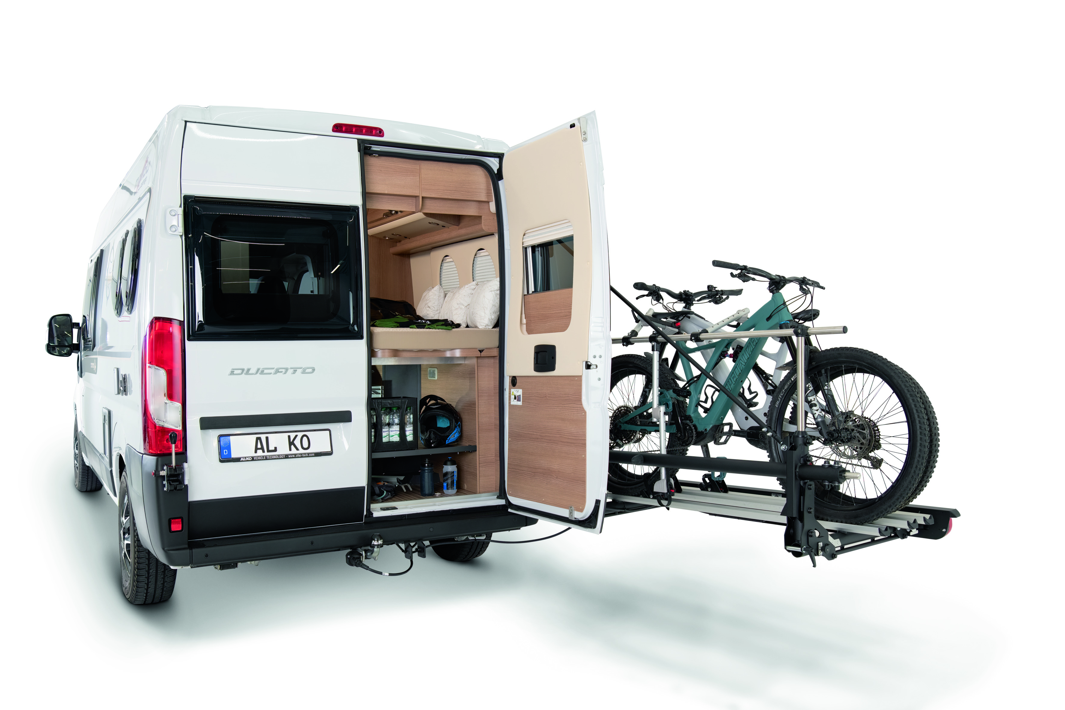 AL-KO Vehicle Technology (AL-KO VT) zeigt auf der Reise + Camping in Essen in Halle 2 auf Stand E15 sowie auf der Sonderfläche 2/Stand E11 vom 22.-26.02.2023 Lösungen für den unkomplizierten Fahrrad-Transport am Kastenwagen und fürs komfortable Nivellieren an Wohnwagen, Kastenwagen und Wohnmobil.