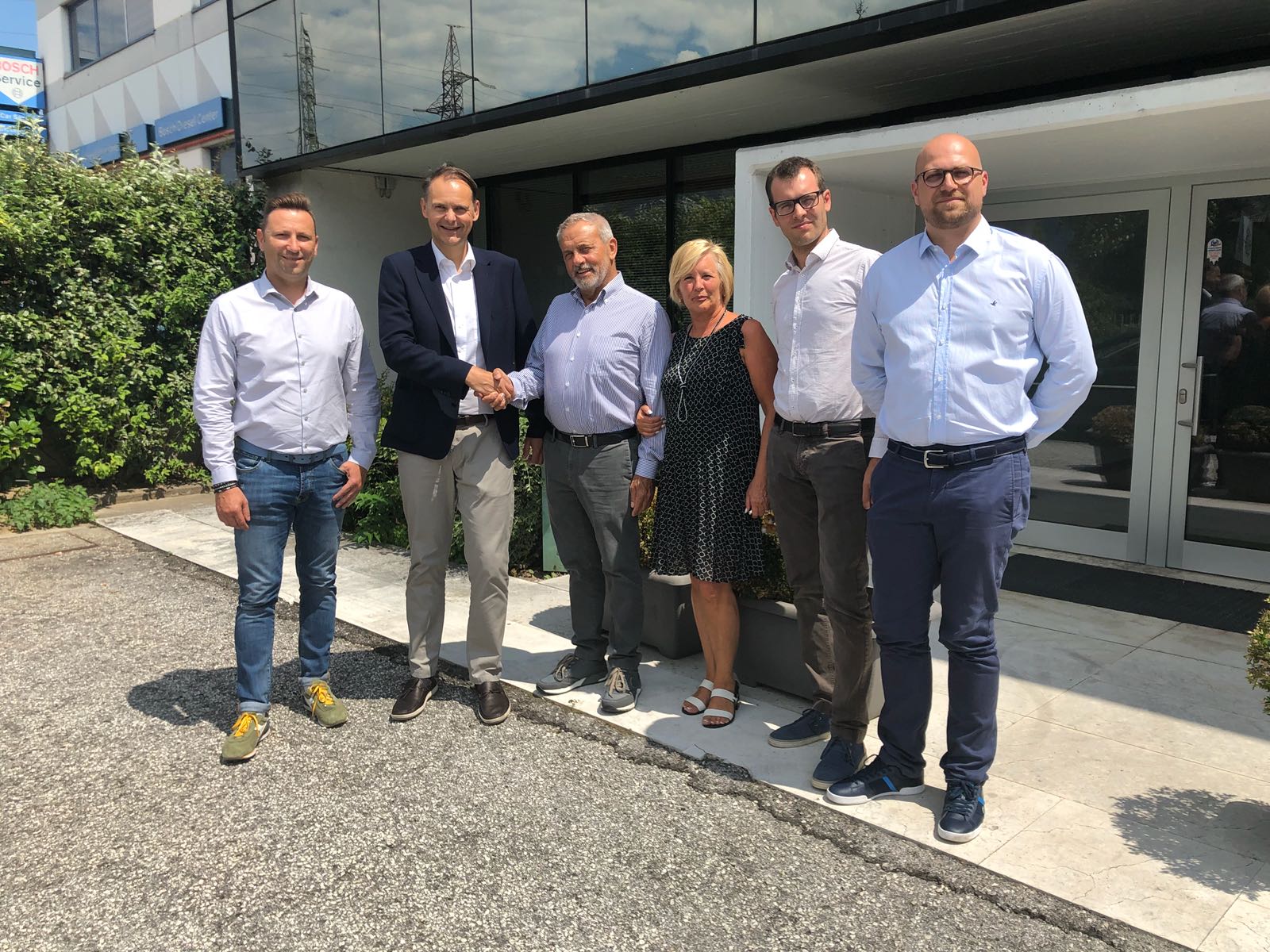 DexKo Global Inc. hat eine Vereinbarung zur Übernahme des Unternehmens CBE s.r.l unterzeichnet. Damit soll das Kerngeschäft der AL-KO Fahrzeugtechnik um den Bereich Systemlösungen für Elektronik erweitert werden. Unser Foto zeigt von links: Dorian Sosi, Gerd Stoll (Geschäftsführer AL-KO KOBER GmbH/Srl), Bruno Conci, Laura Betta Conci, Roberto Conci und Paolo Moiola.