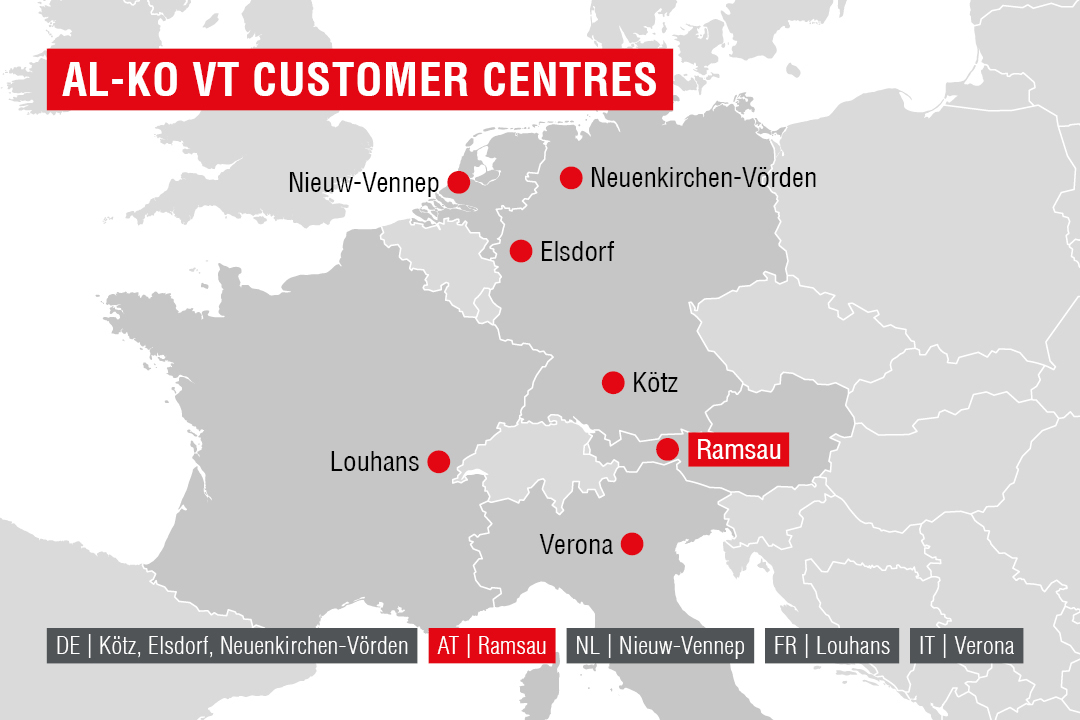 “The newly opened customer centre in Ramsau in the Zillertal valley in Austria is another step towards even greater customer proximity and is a first-class addition to AL-KO VT’s close-knit service network in Europe,” says Günther Schöllenberger, Managing Director at the Ramsau site. “Our caravanning customers can now have their vehicles retrofitted with high-quality accessories in a great holiday area. Due to its optimal geographical location on the north-south axis, the Ramsau Customer Centre is also ideal for a stopover during a holiday trip.”