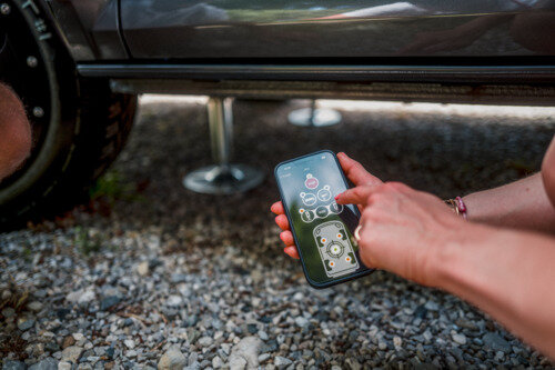 Thanks to these small motors, which are attached to the wheels, you can effortlessly park and manoeuvre the caravan with millimetre precision using just a remote control, and easily overcome obstacles of up to 4 centimetres or gradients of up to 28 percent – an invaluable tool for solo travellers as well as for people with age-related or physical limitations.